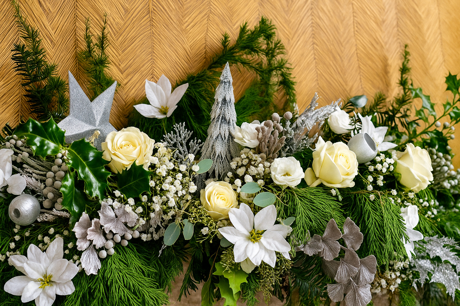 Transform your home or venue with our White Christmas Garlands, available from £60 per foot. Lush and graceful, these garlands are woven with frosted greenery, white berries, and subtle shimmer for an effortlessly elegant finish. Perfect for staircases, banisters, or mantlepieces, they bring the ethereal magic of a winter wonderland to any space.