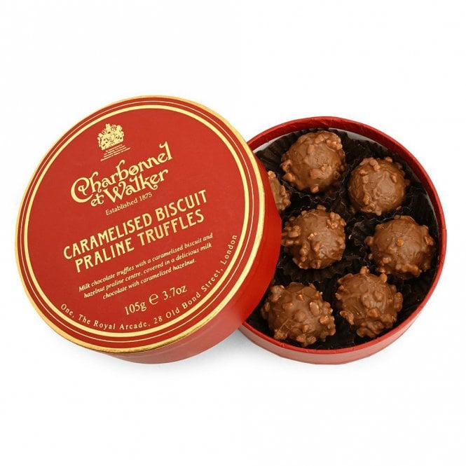 These Caramelised Biscuit Praline Truffles are heavenly Milk Chocolate truffles with a Caramelised Biscuit Praline centre. Each truffle is expertly coated in Milk Chocolate and moreish caramelised Hazelnut pieces. (105g)