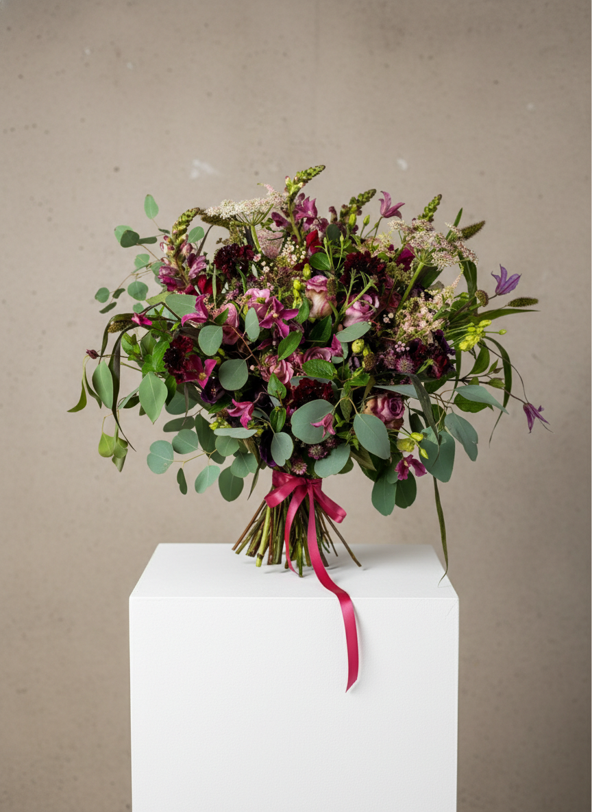 purples in varying shades, burgundy and a hint of blush to create a truly enchanting