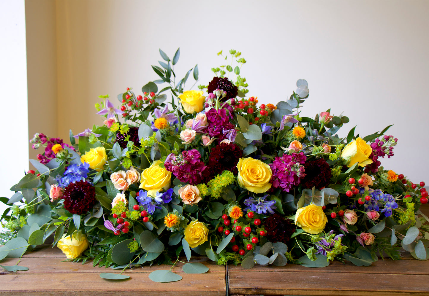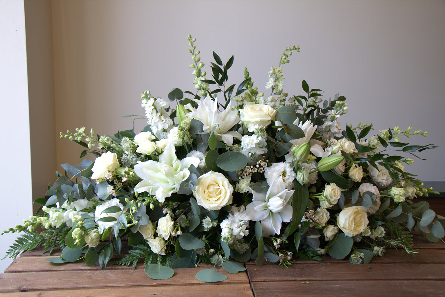 We require at least 4 days notice for funeral flower orders. For shorter notice orders, please contact the shop directly so we can advise you on options within our available stock.